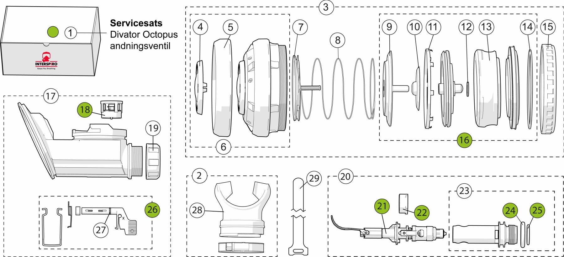Octopus andningsventil med hållare
