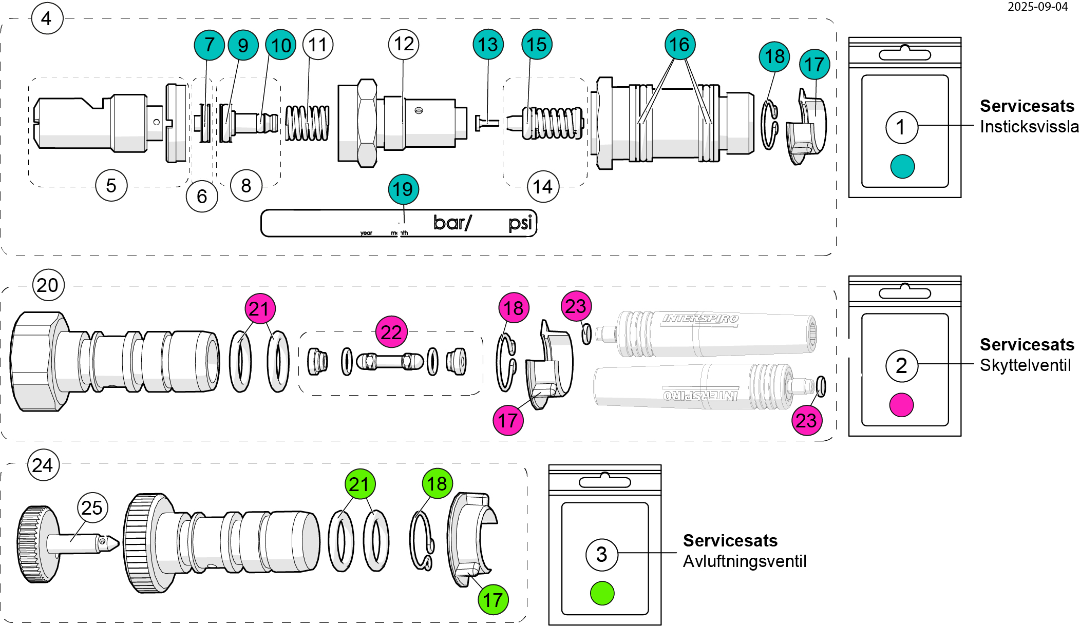 Versionen med stor (gul) box har ett säkerhetsventilhandtag med Interspiro-hankontakt.