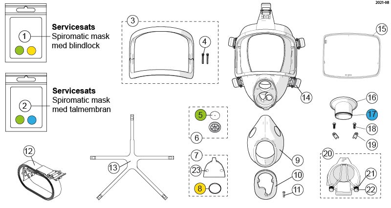 Kompletterande enheter och reservdelar till våra äldre Spiromatic-masker och andningsventiler.