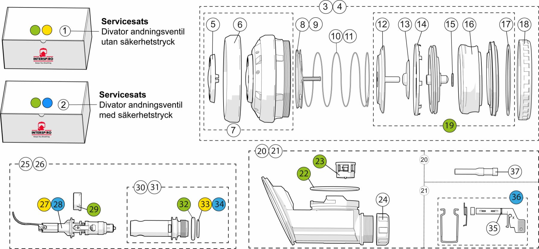 Divator-andningsventilen finns med säkerhetstryck eller med normalt tryck. Säkerhetstrycket aktiveras automatiskt när användaren tar sitt första andetag i masken. Säkerhetstrycket minskar risken för vattenläckage in i masken (eller luft vid ytan) och är mycket viktigt vid dykning i förorenat vatten. Säkerhetstrycket i masken upprätthålls oavsett dykarens luftförbrukningshastighet.