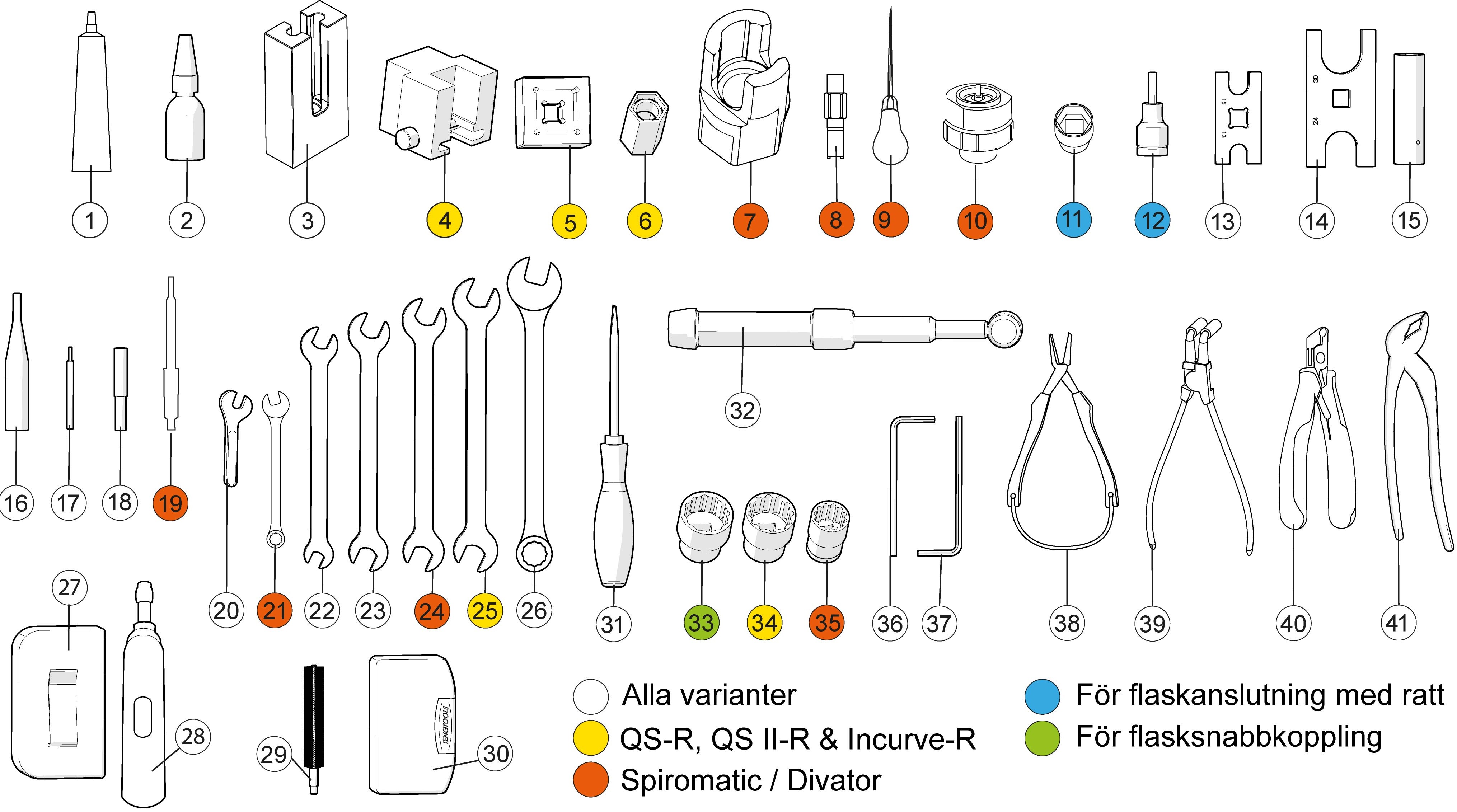 Serviceverktyg för regulatorenheter med reservluftsvarning.