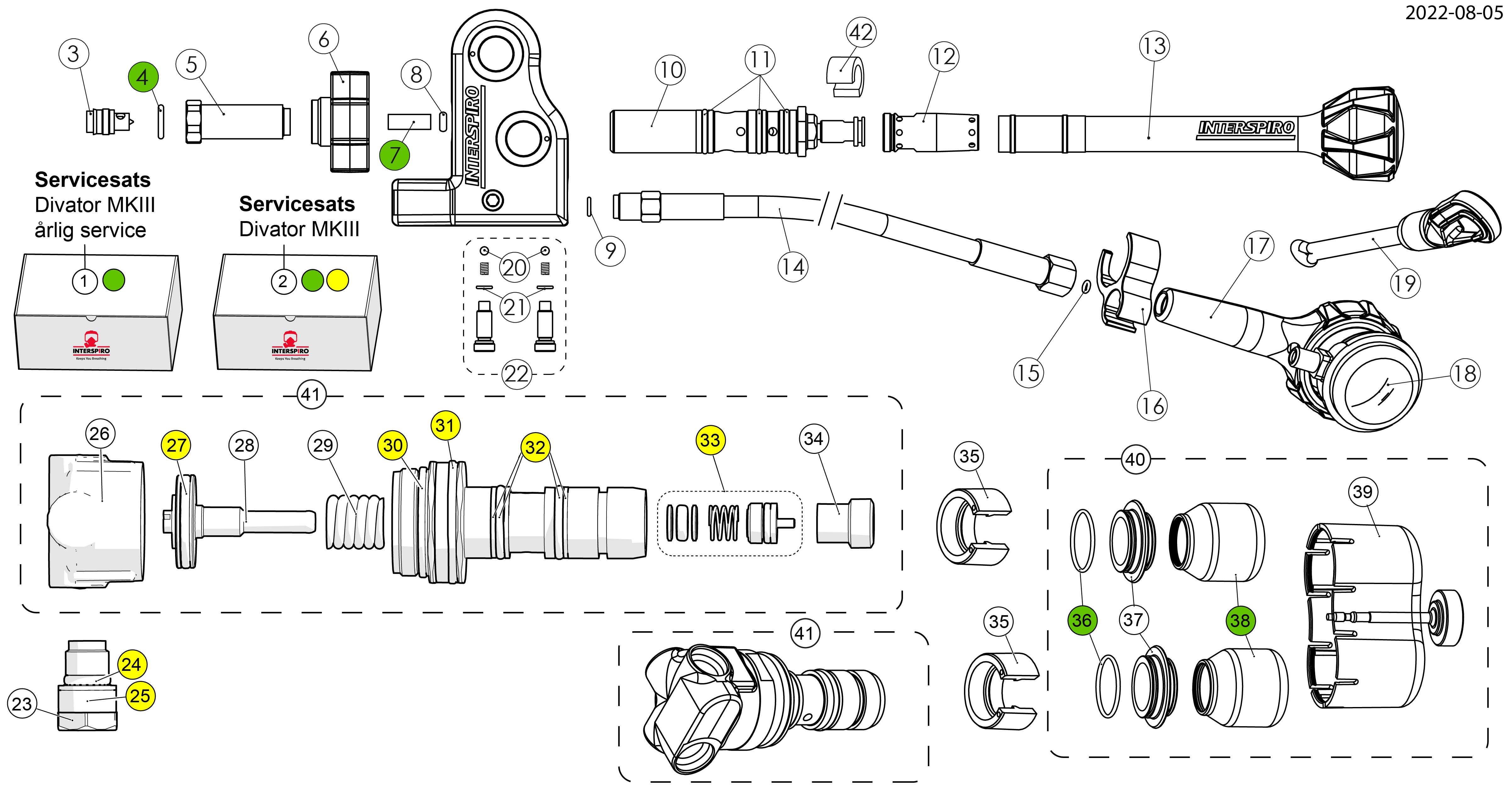 MKIII-regulatorn är försedd med primär luftslang, Octopus-slang och Octopus andningsventil.