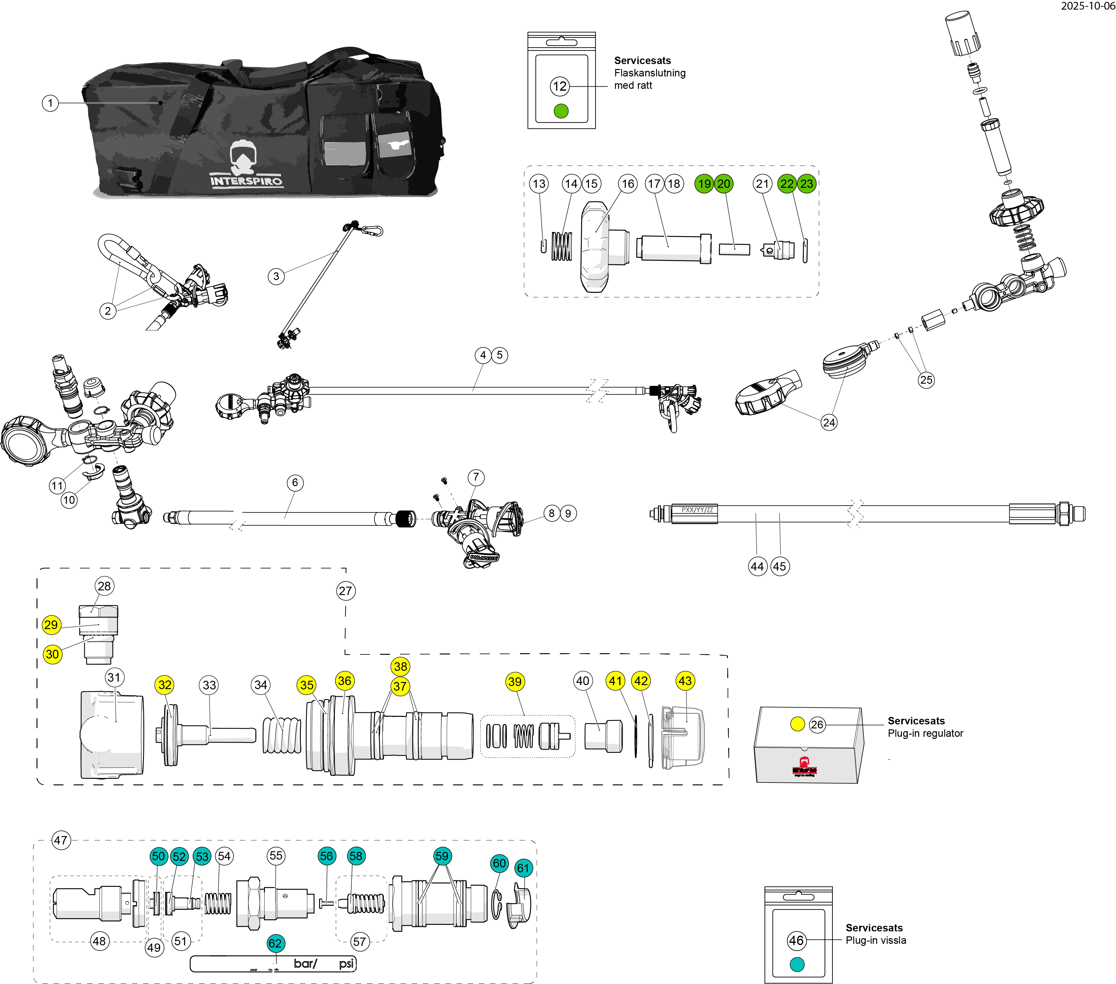 EASE-system med vissla, P+ regulator Interspiro-koppling