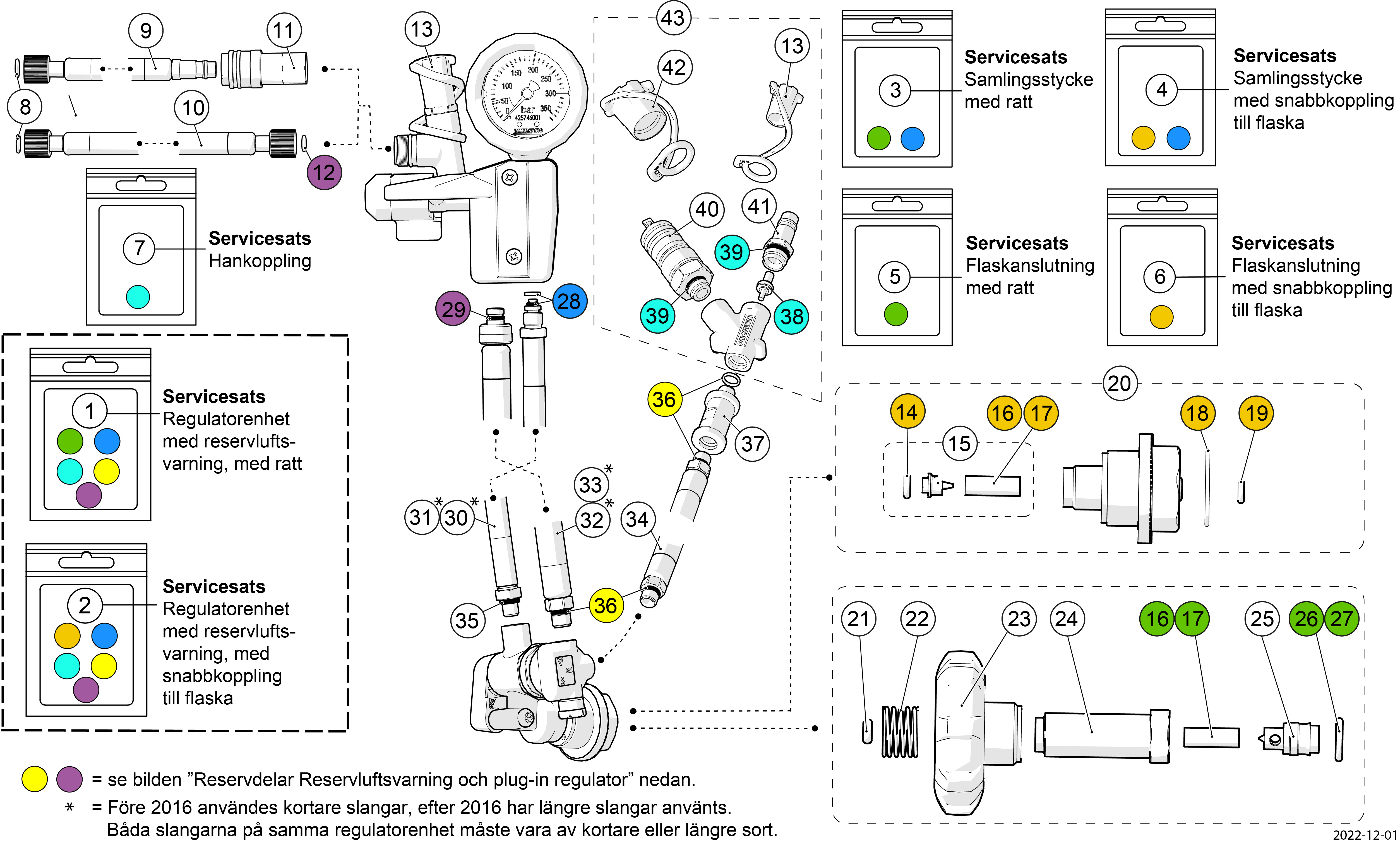 Reservdelar Regulatorenhet med reservluftsvarning för flaskpaket