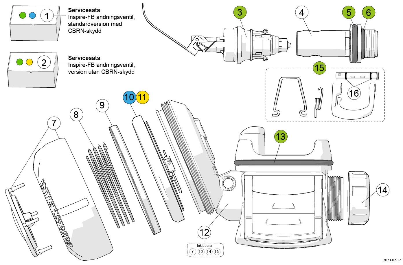 Servicesats för Inspire andningsventil - standardversion med CBRN-skydd