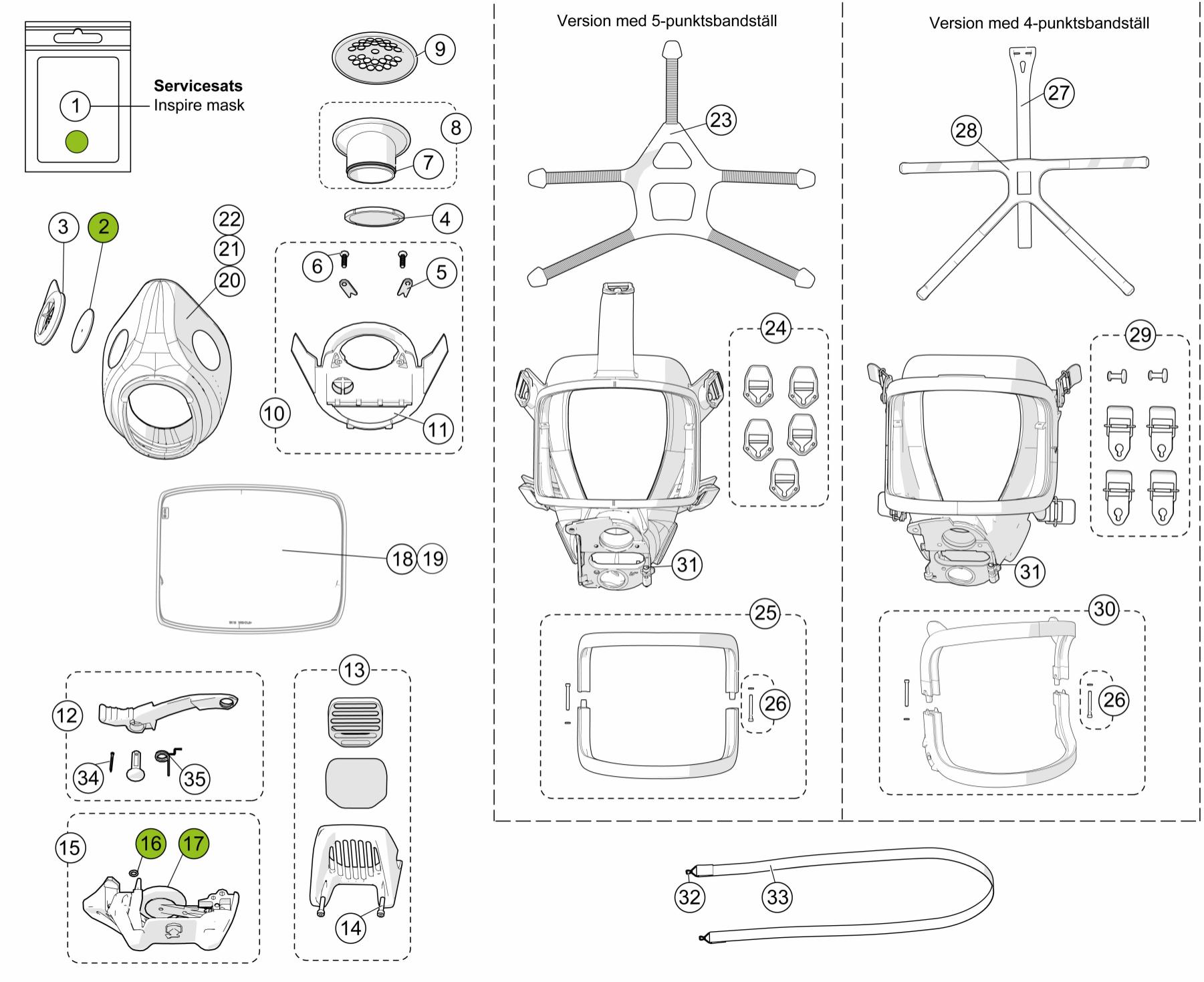 Servicesats för Inspire andningsventil - version utan CBRN-skydd