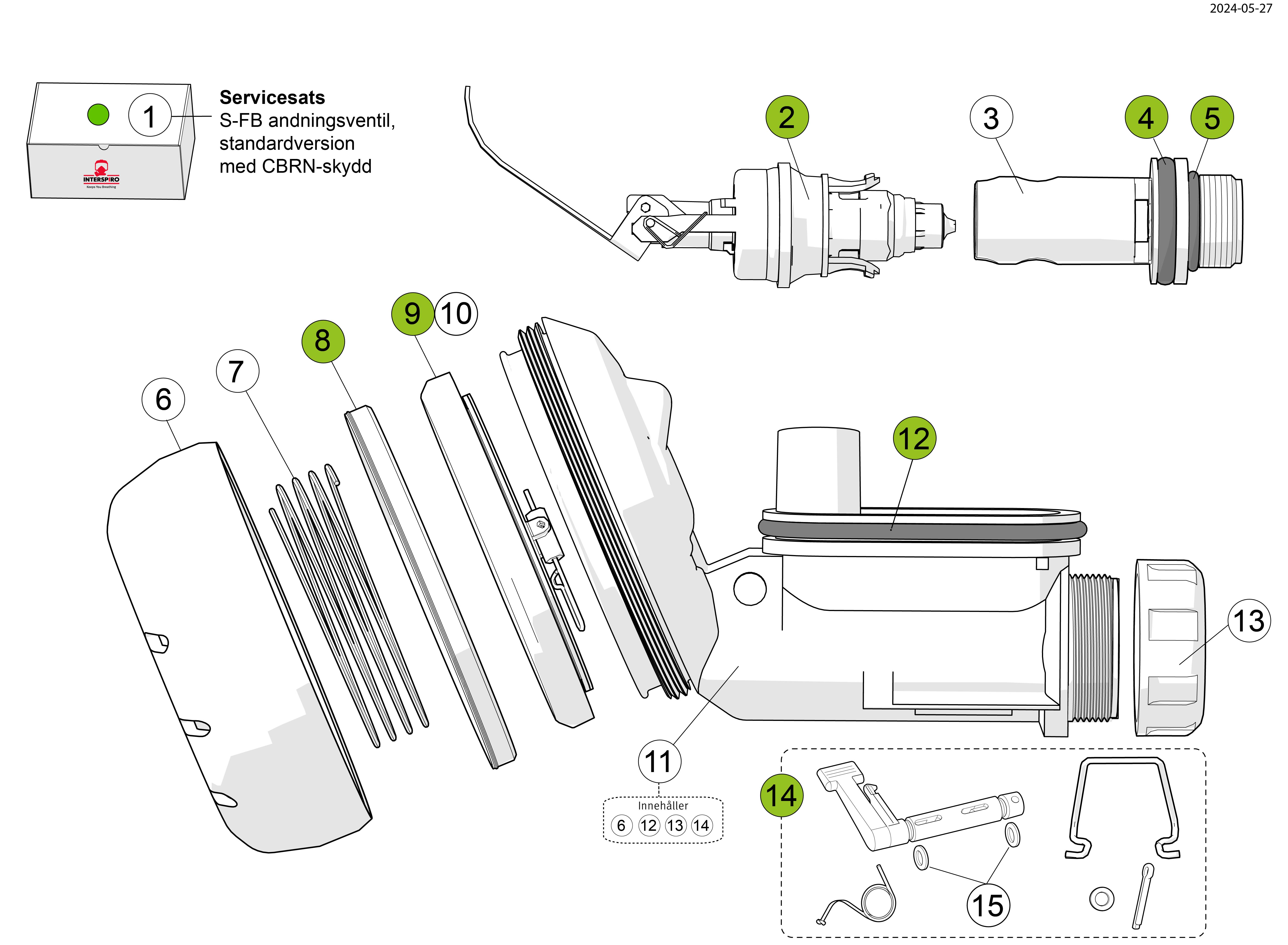 Servicesats för S-andningsventil - standardversion med CBRN-skydd, automatiskt tillslag, ...