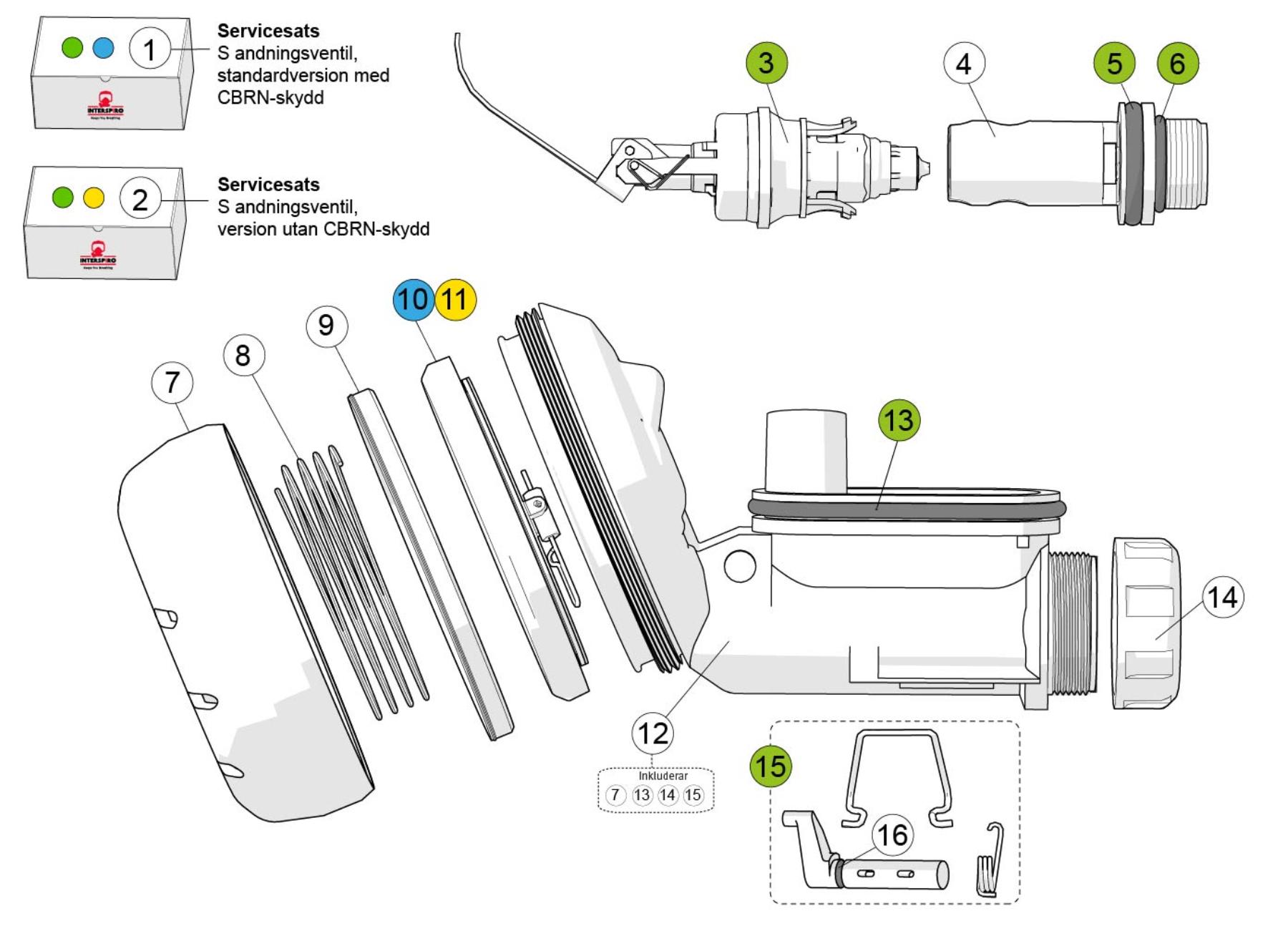 Servicesats för S-andningsventil - standardversion med CBRN-skydd, friskluftslucka, M16