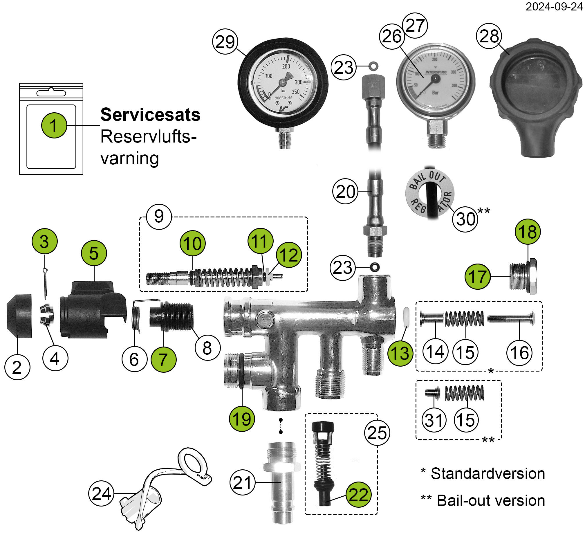5. Servicesatserna innehåller utbytesdelar för förebyggande underhåll.