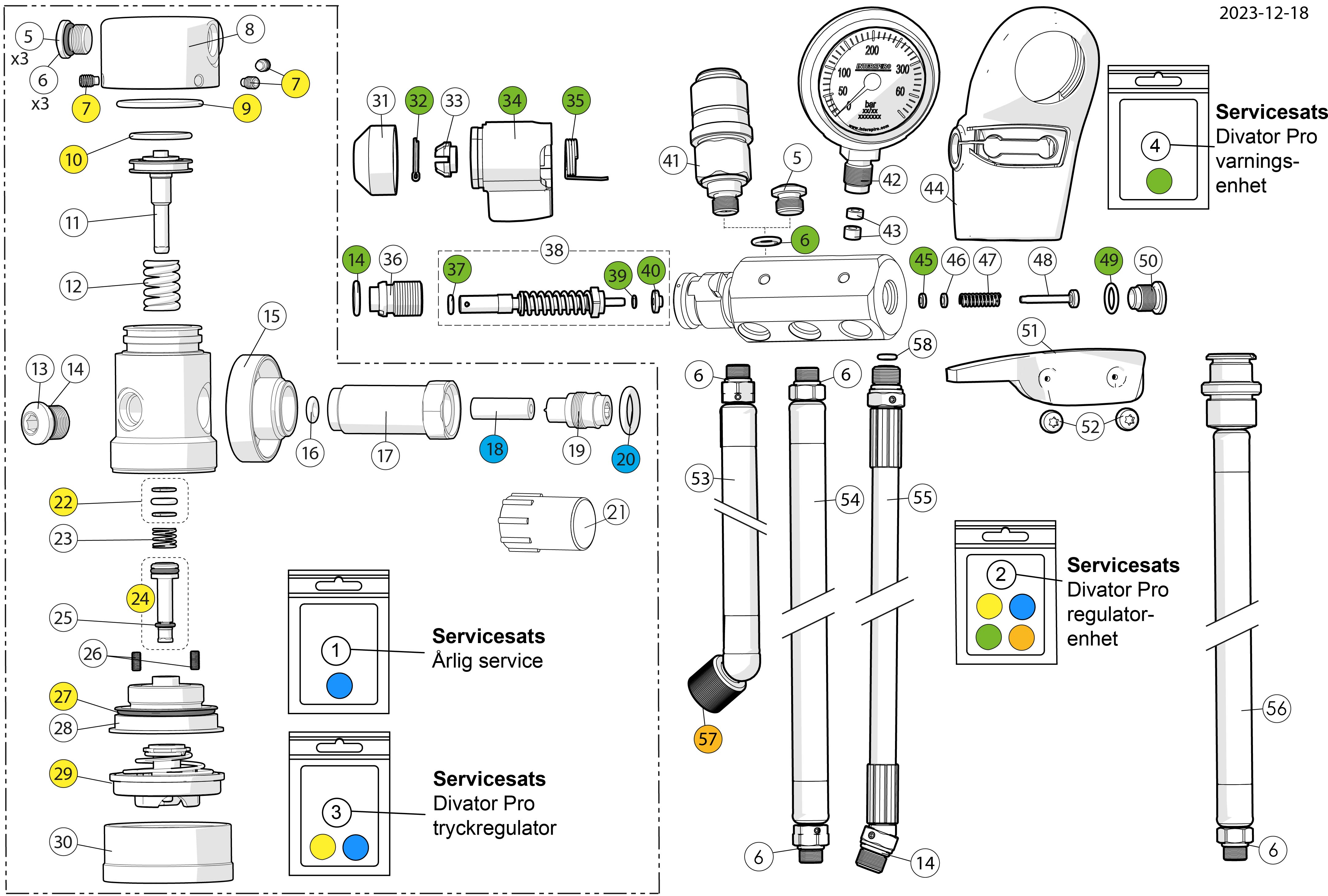 5. Servicesatserna innehåller utbytesdelar för förebyggande underhåll.